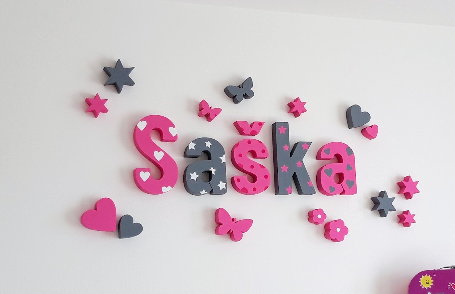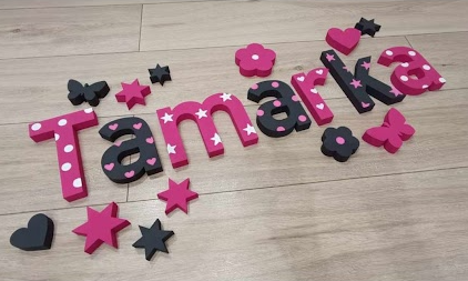 V našej ponuke 3D nápisov nájdete aj ručne maľované detské dekorácie pre Vaše ratolesti. Na výber je množstvo typov písma, farebných kombinácií a doplnkov k samotným menám. Tiež si môžete vybrať aj samostatne stojace písmenká s ľubovoľným rozprávkovým motívom.